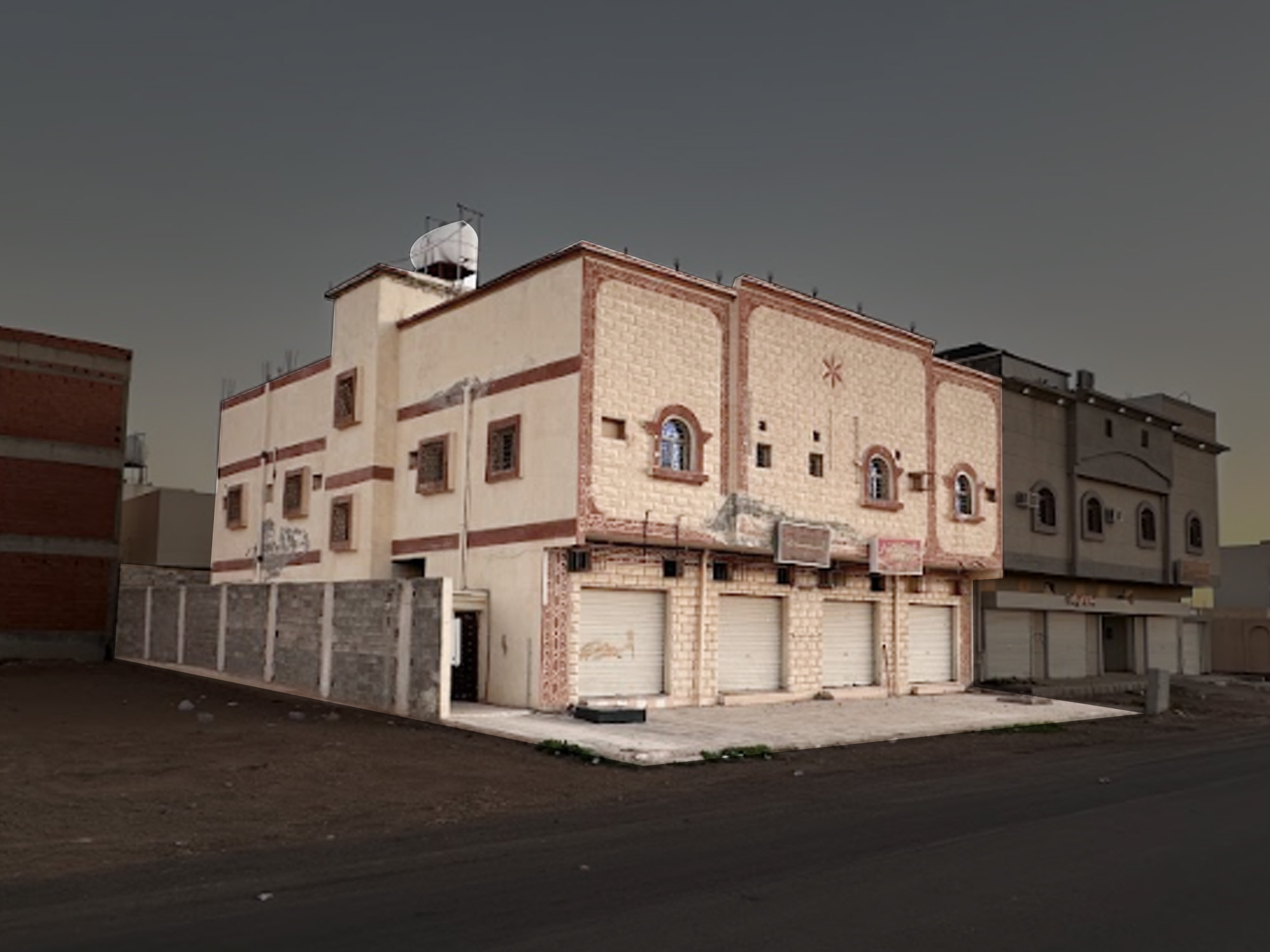 - وشقة مكونة من: 3 غرف ومجلس وصالة ومطبخ ومستودع و 3 دورات مياه