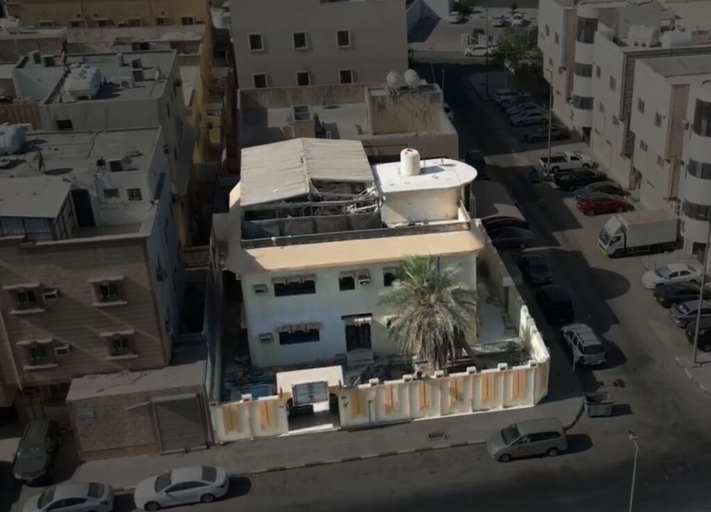 الدور الأرضي يتكون من: مجلسين وغرفتين وصالة ودورتي مياه ومطبخ ومستودع وغرفة خادمة ومستودع خارجي هنجر