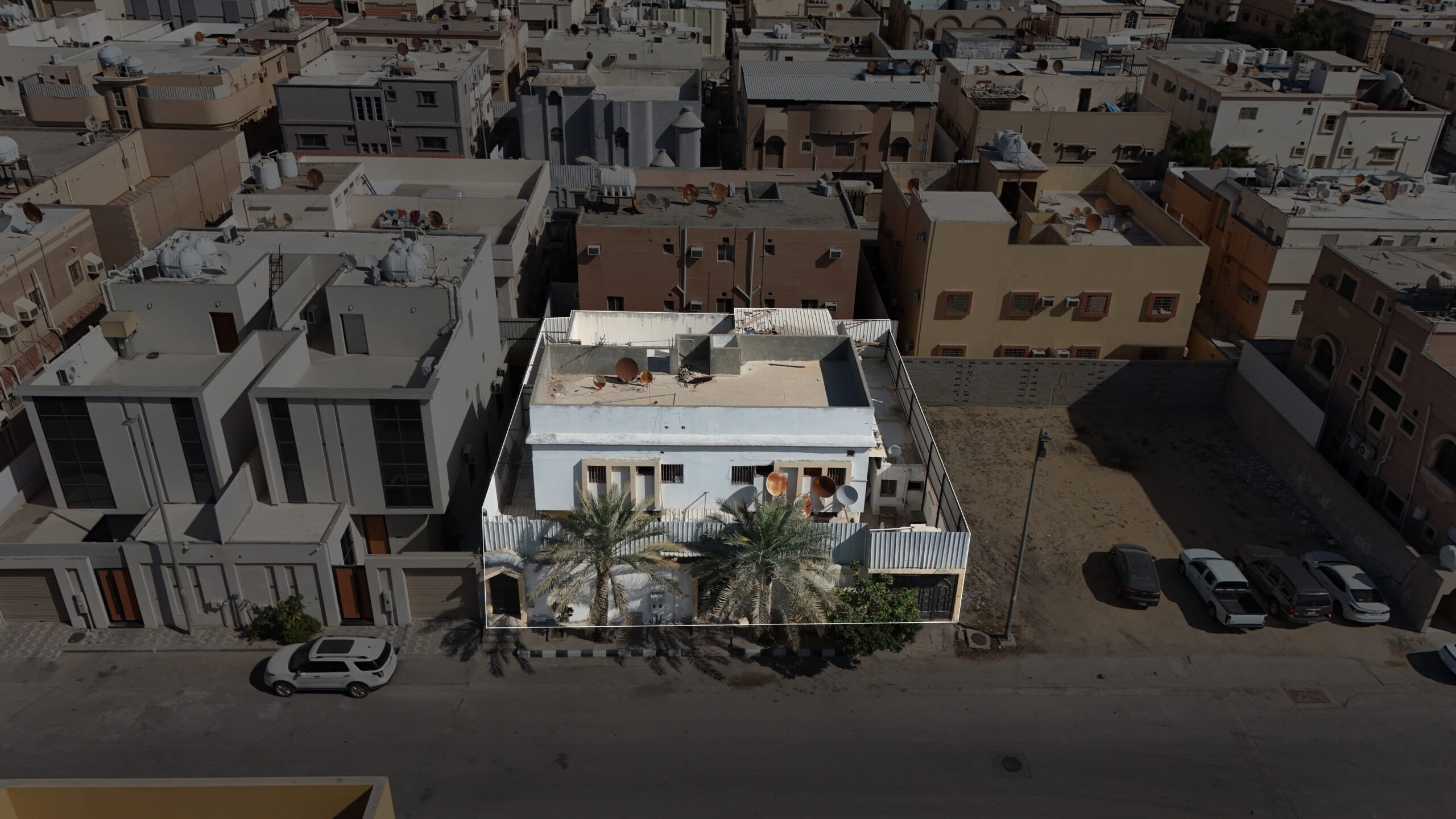 تتميز الفيلا بواجهة غربية في حي سكني هادئ ومتوفر به جميع الخدمات، بالقرب من: