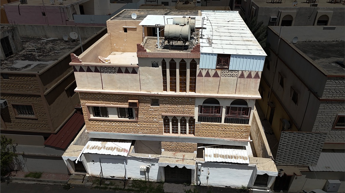 الدور الأرضي مكون من: 4 غرف وصالة ومطبخ ودورتي مياه