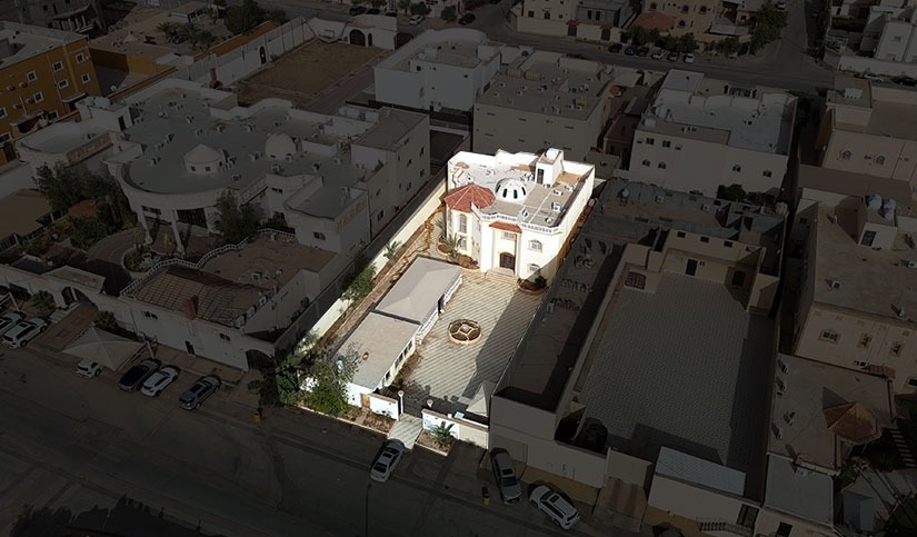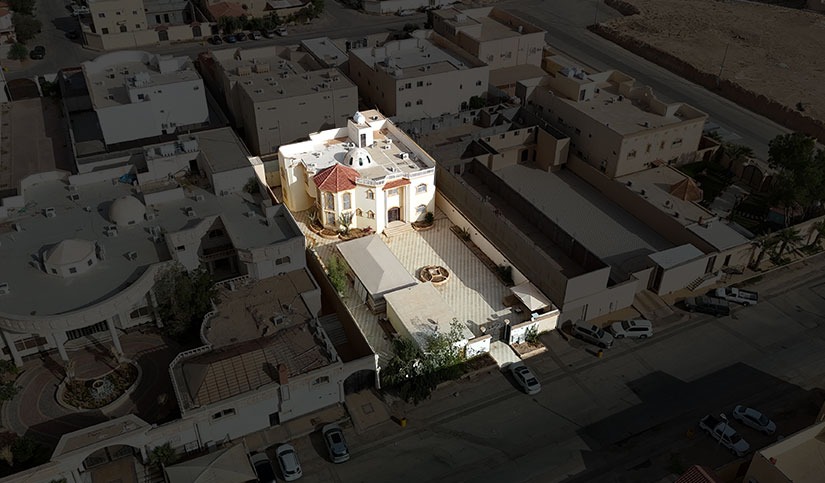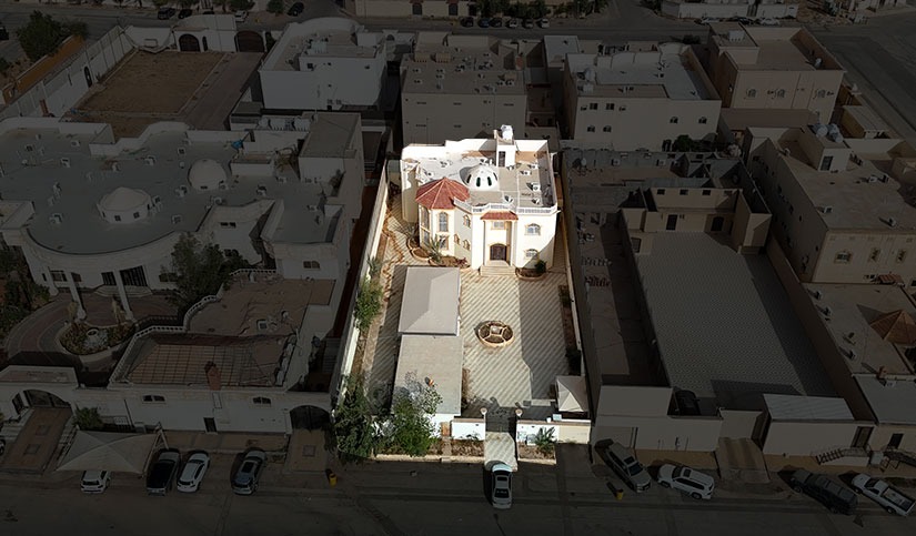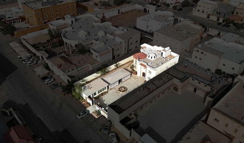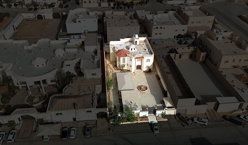 Men’s majlis, women’s majlis, a room, two bathrooms, dining room, living room, and kitchen.
