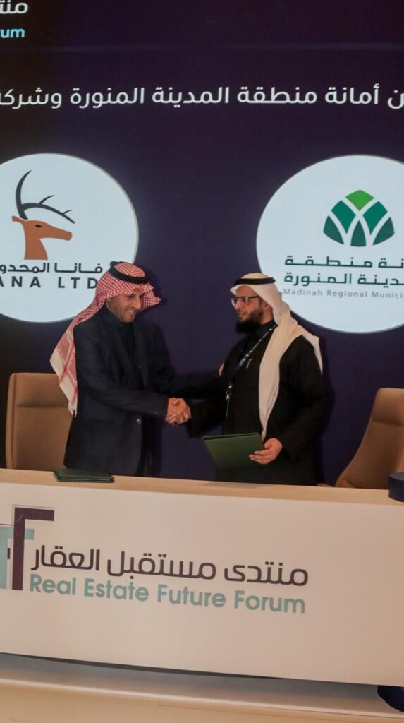 شهدت العاصمة الرياض في 28 يناير 2025 توقيع اتفاقية تعاون استثماري بين أمانة منطقة المدينة المنورة وشركة فانا المحدودة، وذلك على هامش فعاليا “منتدى مستقبل العقار” الذي يعد أحد أبرز المنصات الوطنية المعنية بتطوير القطاع العقاري في المملكة